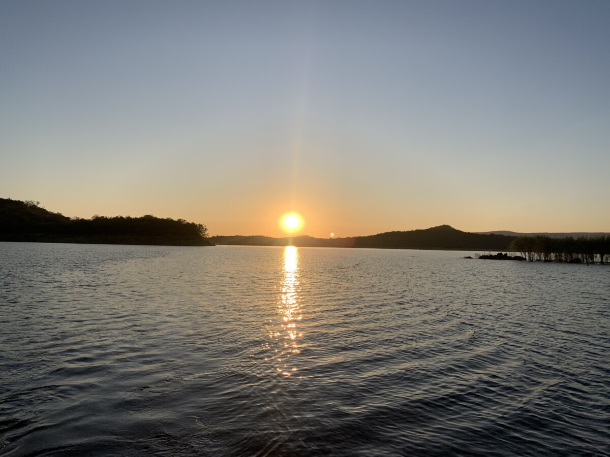 Het Kariba meer is een kunstmatig stuwmeer. De gigantische dam voorziet een groot deel van Zimbabwe en een klein deel van Zambia van elektriciteit. Het meer heeft een lengte van zo’n 230 km en heeft een maximale breedte van 40 km. Het meer is nu een paradijs voor talloze dieren, waaronder krokodillen, nijlpaarden en olifanten. Je kunt de dam bezoeken en van Zambia naar Zimbabwe lopen en weer terug. Het papierwerk kost meer tijd dan het bezoek zelf :).
