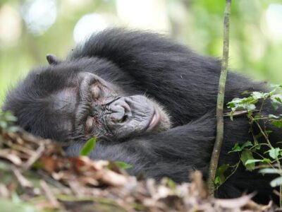 Vroeg in de ochtend ga je in kleine groepjes met een ervaren ranger op zoek naar de chimpansees. De chimpansees leven in de toppen van bomen die wel 50 meter hoog zijn, waar ze naar fruit, takken en bladeren zoeken. Foto’s maken kan moeilijk zijn, maar met geluk komen de chimpansees naar beneden en gaan ze elkaar zitten vlooien op een paar meter bij je vandaan!