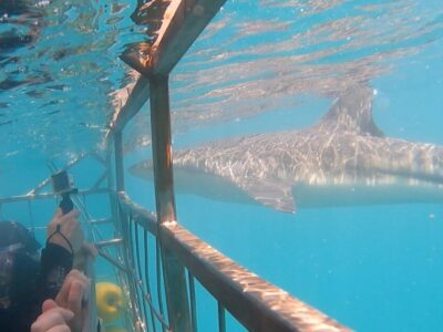 Ben je op zoek naar avontuur? Overnacht dan in Gansbaai, dé plek om te duiken met grote witte haaien (als het seizoen en de omstandigheden het toelaten). Vanuit de haven vertrekken ook boten voor walvissafari’s op zee, vooral tussen juni en november.