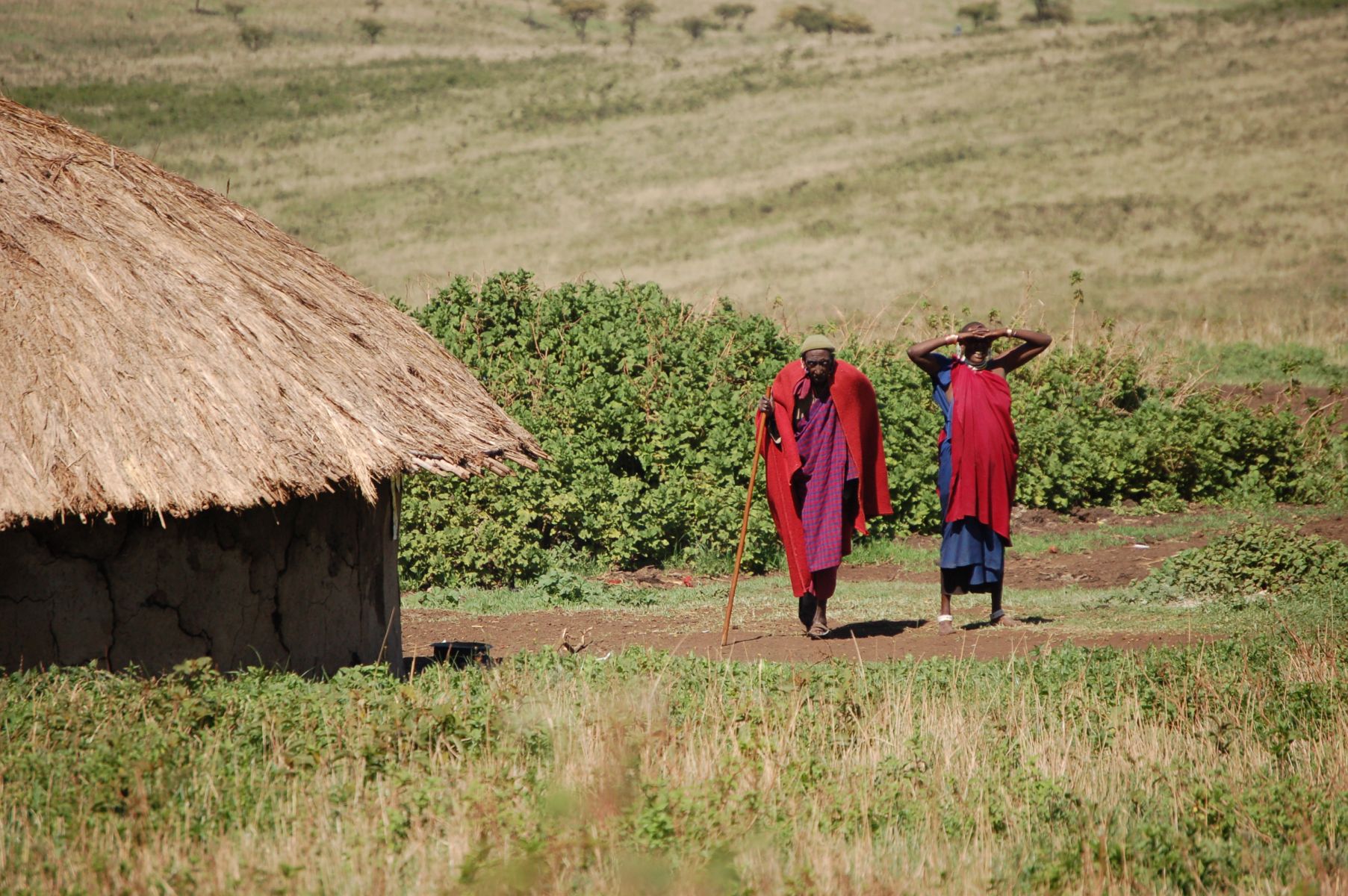Vandaag gingen we richting Ol Popongi een Maasai dorp. Dit was leuk om te doen. Wij hebben ook enig inzicht gekregen in de Maasai cultuur, het hoe, het waarom. Een gesprek met de oudste bewoonster ( 96 jaar wij dachten 69 jaar) bracht de verschillen aan het licht: hoeveel koeien/geiten hebben jullie? Waarom koop je voedsel? Waarom heb je maar 3 kinderen? Het slapen in dit woestijn dorp op een bed van takken en koeienhuid en een slaapzak is voor ons een heel aparte ervaring geweest. De keuken was overigens voortreffelijk. Het is wel goed om te weten dat dit dorp speciaal gebouwd en in stand wordt gehouden om de cultuur te bewaren. Sommige moderne comfortzaken zijn er wel aangebracht (toilet en douche). Aan het einde van de middag werd het erg helder weer en konden wij de Kilimanjaro in vol ornaat zien: indrukwekkend.